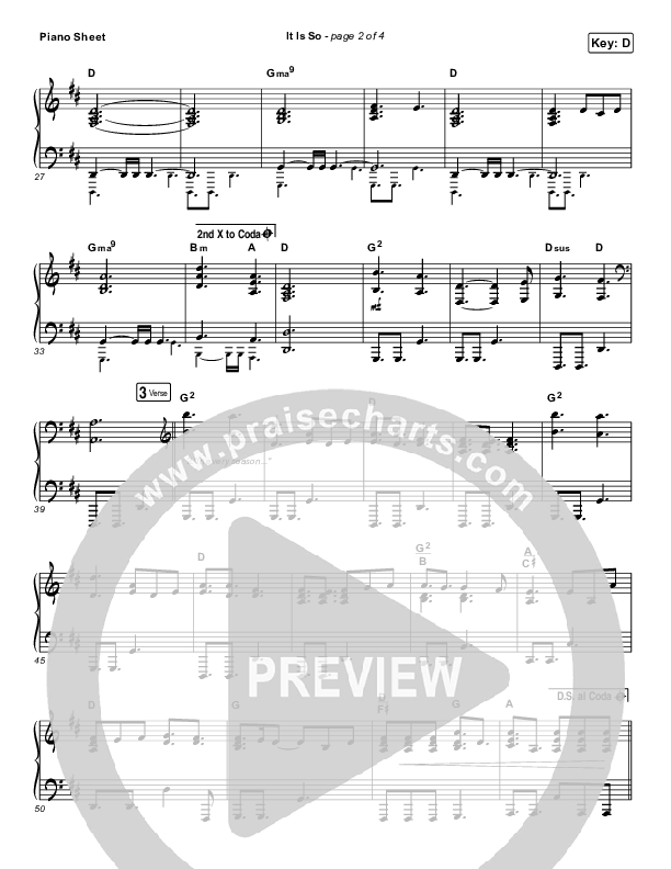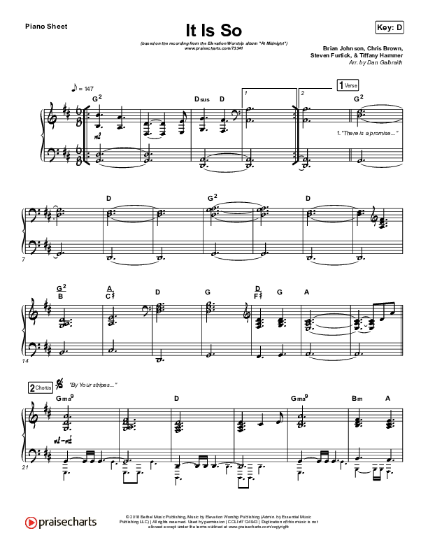 Download the piano sheet for It Is So by Elevation Worship, from the album At Midnight. This song was arranged by Daniel Galbraith in the key of D, Eb.