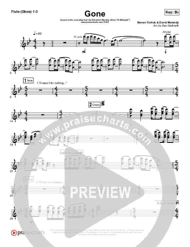 Download the Orchestration wind parts for Gone by Elevation Worship, from the album At Midnight. This song was arranged by Daniel Galbraith in the key of A, Bb, E, Eb, F, G.