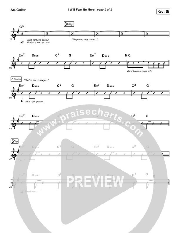 Download the Acoustic Guitar sheet music for I Will Fear No More by The Afters, from the album The Beginning & Everything After. This song was arranged by Wayne Yankie / Daniel Galbraith in the key of A, Bb.