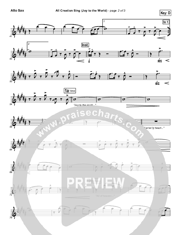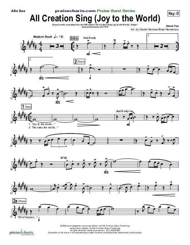 Download the AltoSax sheet music for All Creation Sing (Joy To The World) by FEE Band, from the album All Creation Sing. This song was arranged by Brad Henderson / Daniel Semsen in the key of C, D.