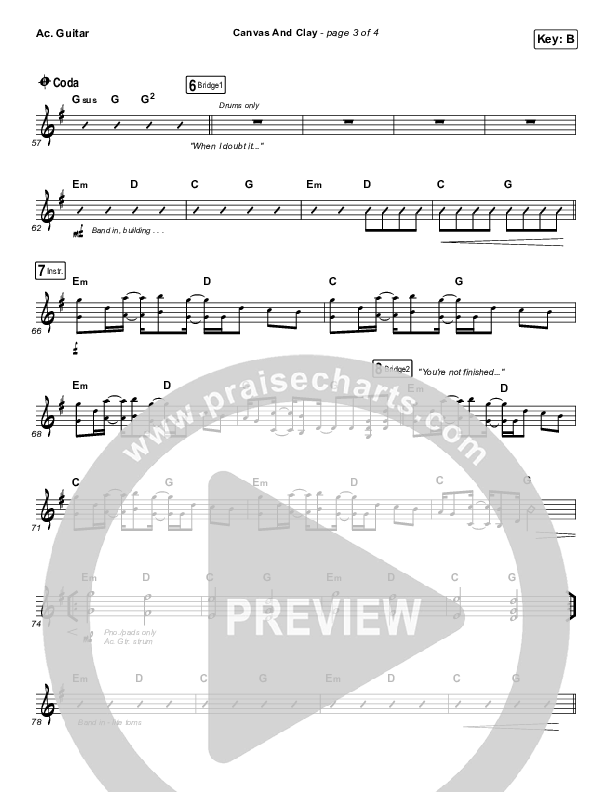 Download the Acoustic Guitar sheet music for Canvas And Clay (Live) by Pat Barrett, from the album Canvas And Clay (Live). This song was arranged by Daniel Galbraith in the key of B, Bb.