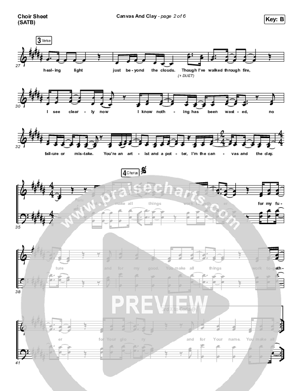 Download the Choir Sheet for Canvas And Clay (Live) by Pat Barrett, from the album Canvas And Clay (Live). This song was arranged by Daniel Galbraith in the key of B, Bb.
