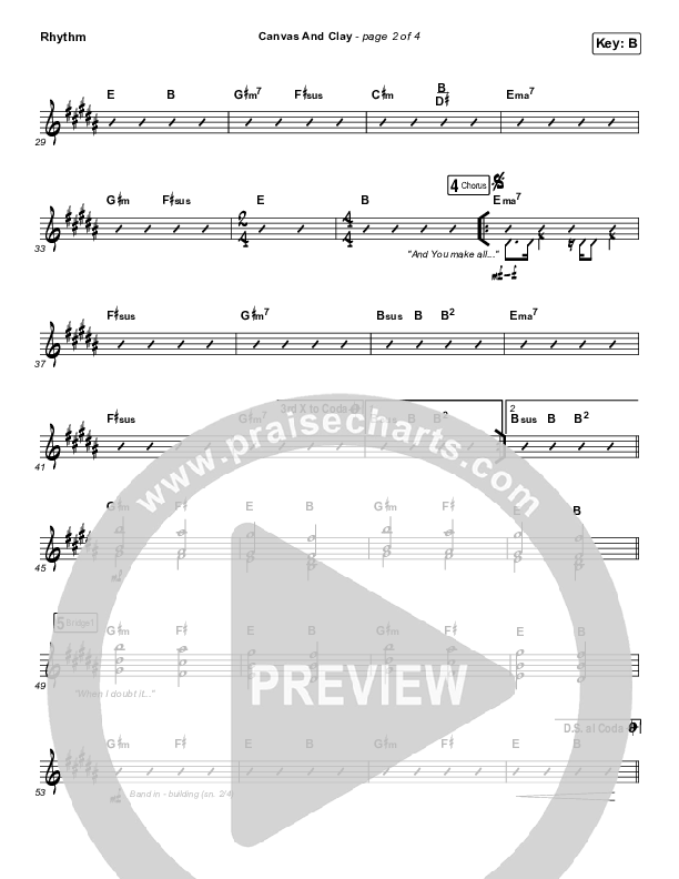 Download the Rhythm Chart for Canvas And Clay (Live) by Pat Barrett, from the album Canvas And Clay (Live). This song was arranged by Daniel Galbraith in the key of B, Bb.