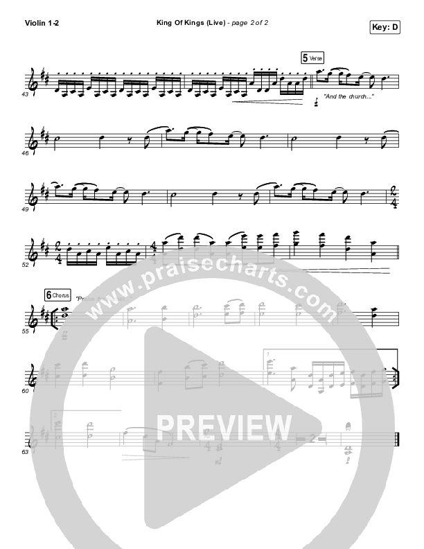 King Of Kings (Live) Violin Sheet Music PDF (Hillsong Worship / Brooke Ligertwood)