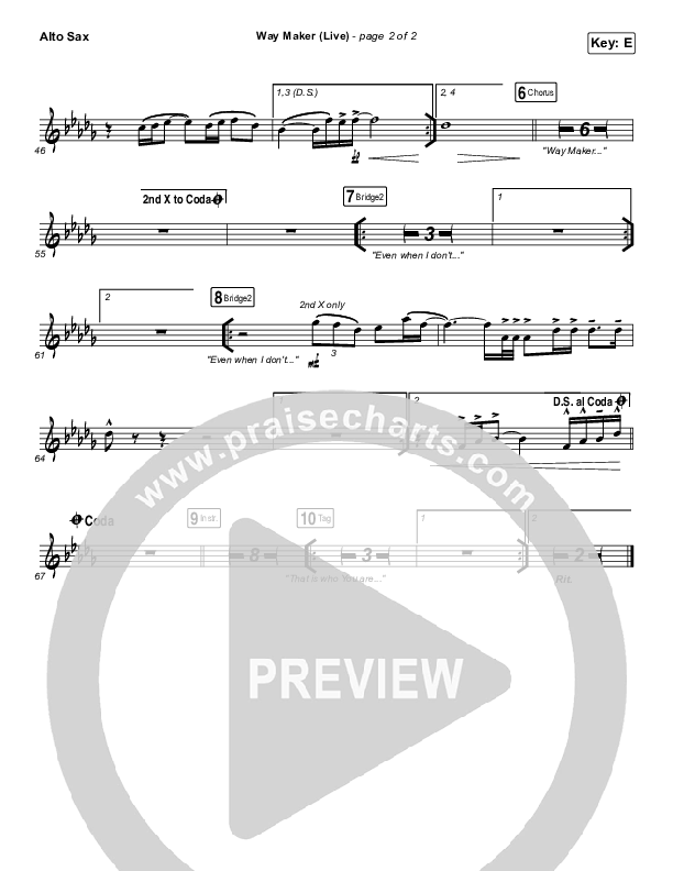Way Maker (Live) Alto Sax Sheet Music PDF (Leeland)