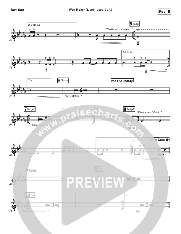 Way Maker (Live) Bari Sax Sheet Music PDF (Leeland)
