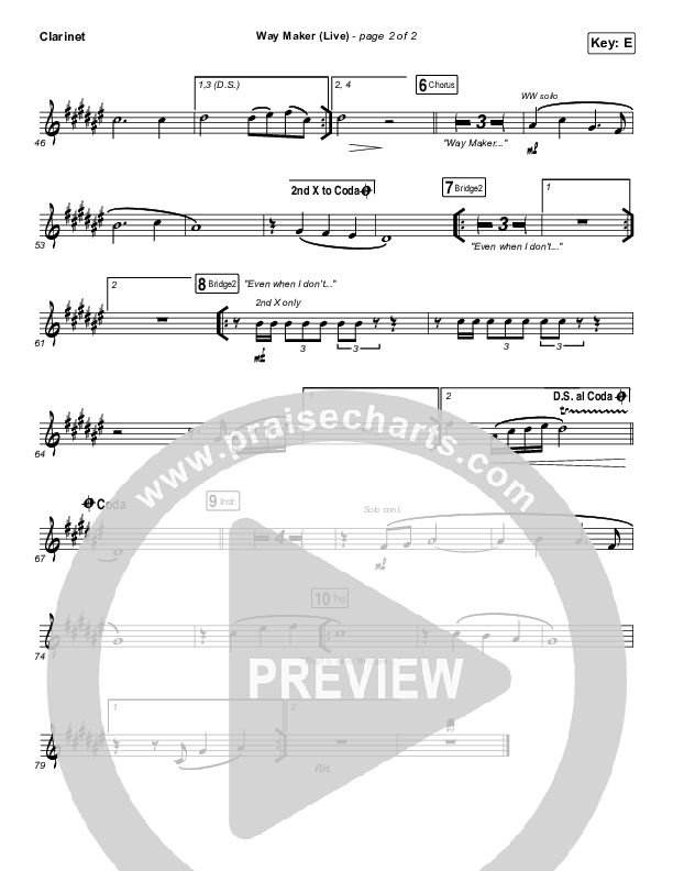 Way Maker (Live) Clarinet Sheet Music PDF (Leeland)