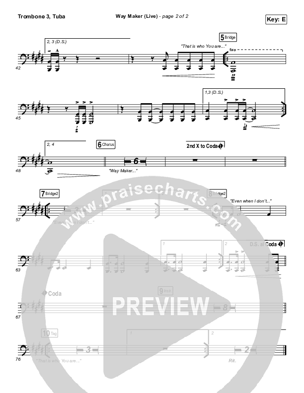Way Maker (Live) Trombone/Tuba Sheet Music PDF (Leeland)