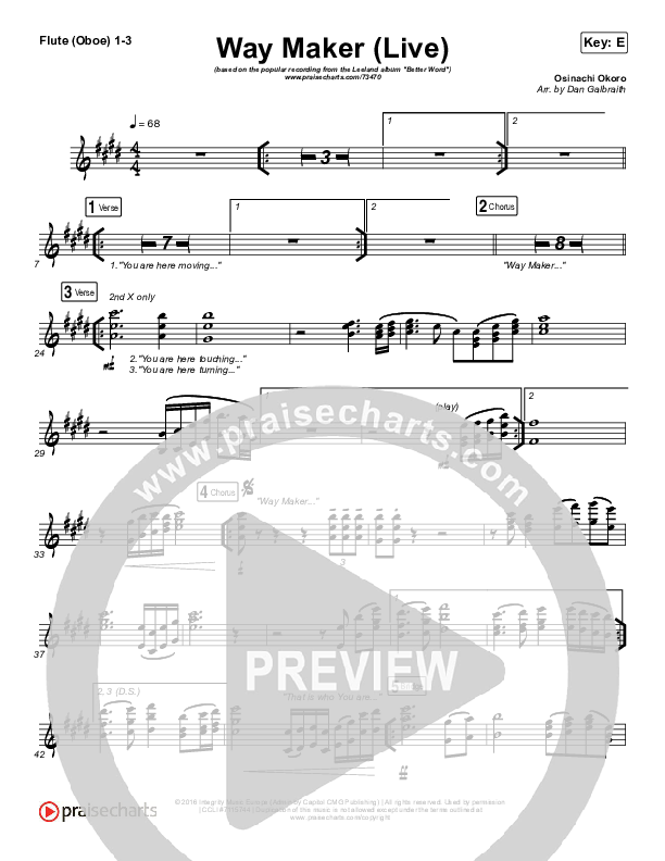 Download the Orchestration wind parts for Way Maker (Live) by Leeland, from the album Better Word. This song was arranged by Daniel Galbraith in the key of Bb, C, D, Db, E, Eb, G.