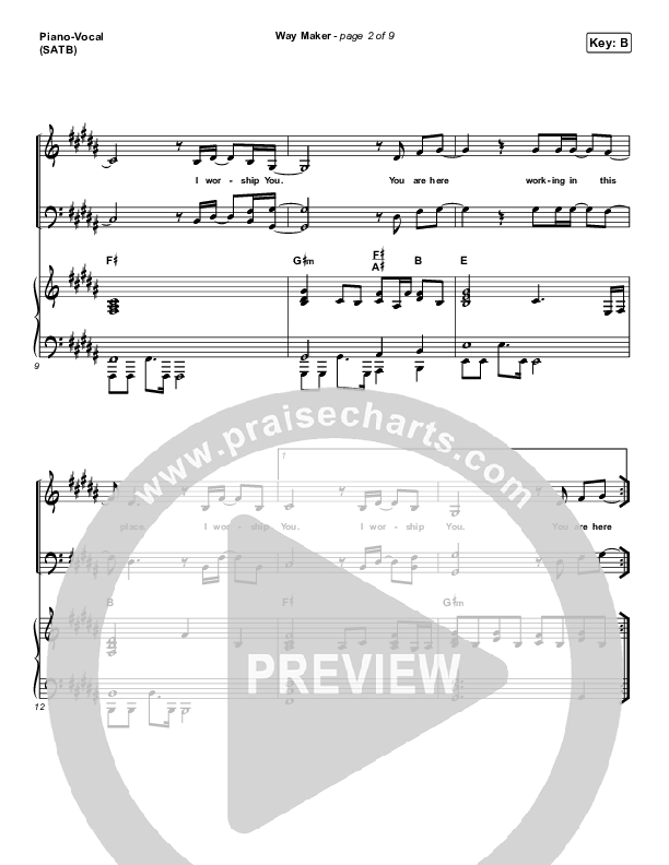 Download the sheet music for Way Maker by Sinach, from the album Way Maker - Single. This song was arranged by Erik Foster / Daniel Galbraith in the key of B, C.