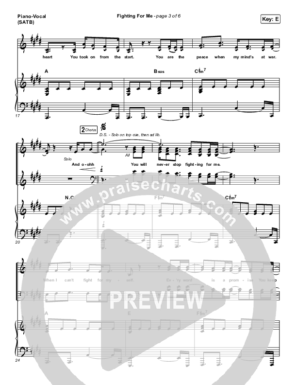 Download the sheet music for Fighting For Me by Riley Clemmons, from the album Fighting For Me. This song was arranged by Jeff Moore in the key of E, Eb.