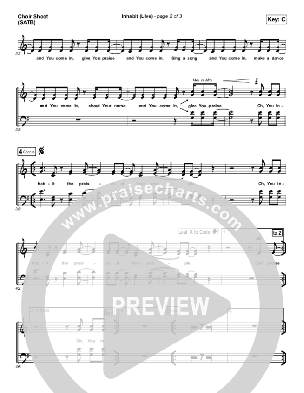 Download the Choir Sheet for Inhabit (Live) by Leeland, from the album Better Word. This song was arranged by Wayne Yankie in the key of Bb, C.