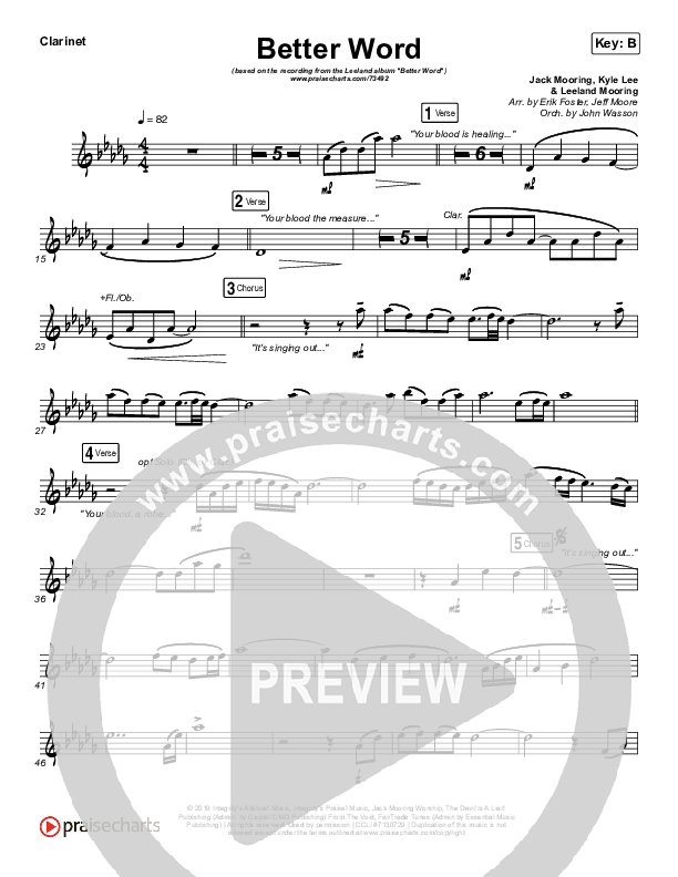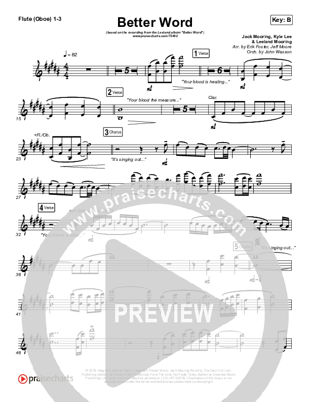 Download the Orchestration wind parts for Better Word (Live) by Leeland, from the album Better Word. This song was arranged by Erik Foster / Jeff Moore / John Wasson in the key of B, Bb.