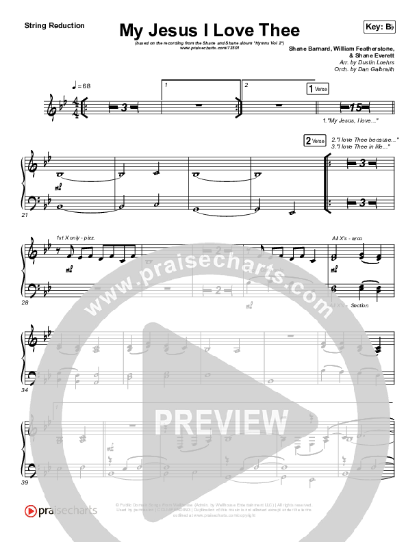 Download the Orchestration for My Jesus I Love Thee by Shane & Shane/The Worship Initiative, from the album Hymns Volume 2. This song was arranged by Dustin Loehrs / Daniel Galbraith in the key of A, Bb.
