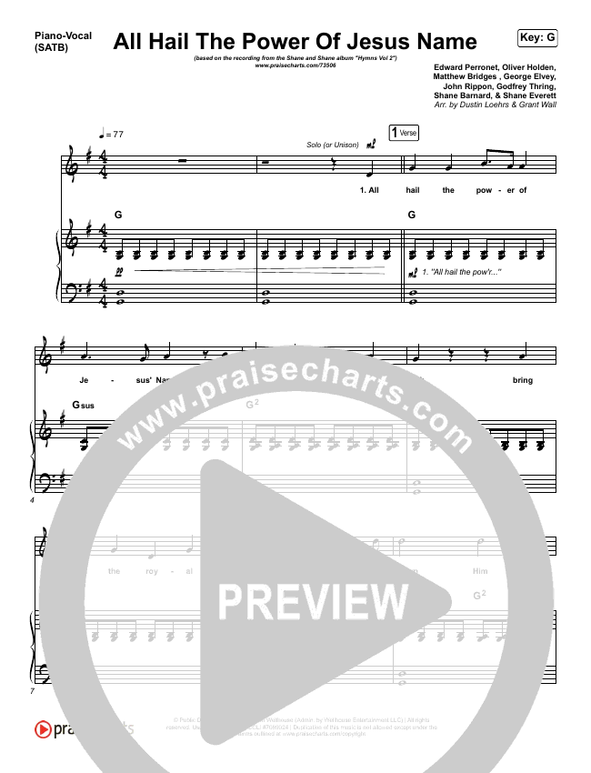 All Hail The Power Of Jesus Name Sheet Music PDF (Shane & Shane / The Worship Initiative)