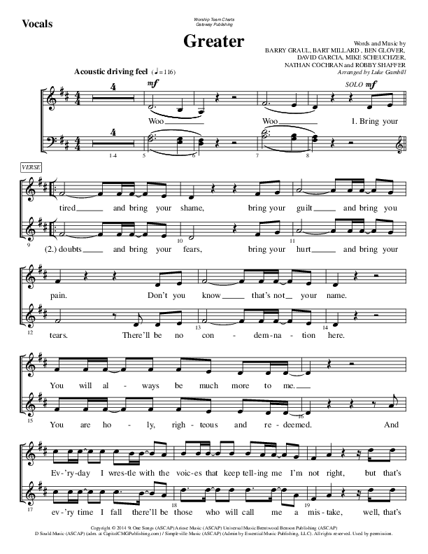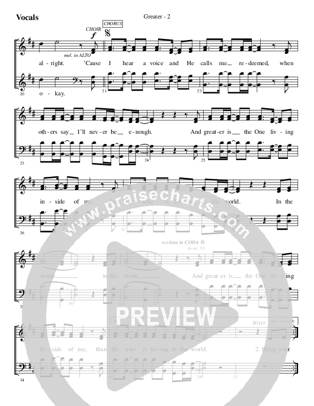 Download the Choir Sheet for Greater by WorshipTeam.tv, from the album WorshipTeam.tv. This song was arranged by Luke Gambill in the key of D.