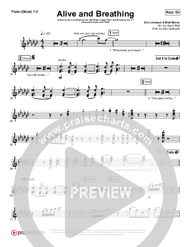 Download the Orchestration wind parts for Alive And Breathing by Matt Maher / Elle Limebear, from the album Alive & Breathing. This song was arranged by Grant Wall / Daniel Galbraith in the key of G, Gb.