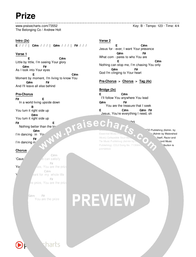 Prize Chords PDF (The Belonging Co / Andrew Holt)