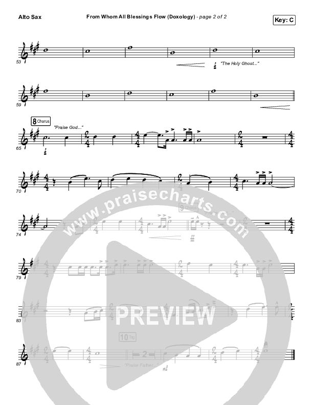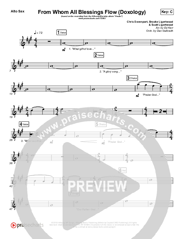 From Whom All Blessings Flow (Doxology) Alto Sax Sheet Music PDF (Hillsong Worship)