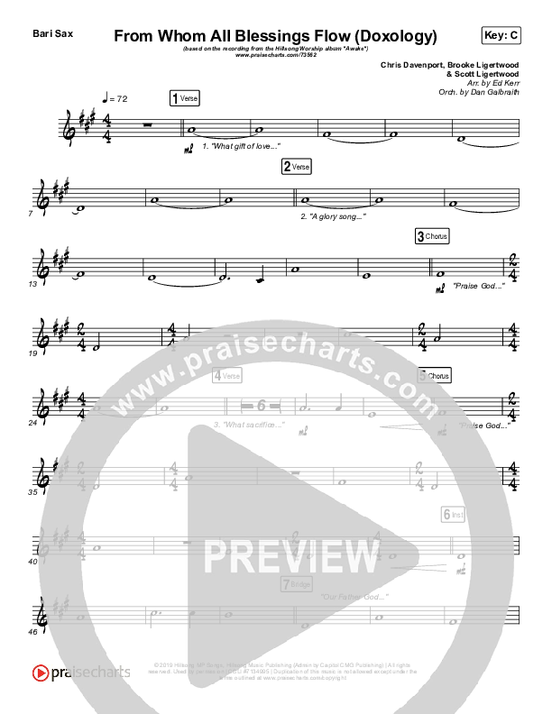From Whom All Blessings Flow (Doxology) Bari Sax Sheet Music PDF (Hillsong Worship)