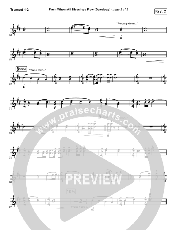 From Whom All Blessings Flow (Doxology) Trumpet Sheet Music PDF (Hillsong Worship)