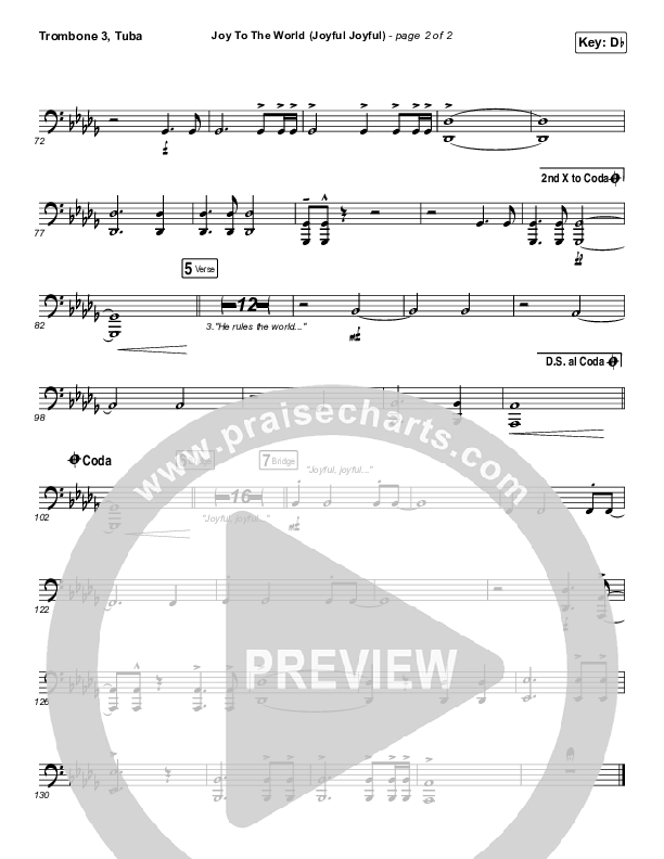 Joy To The World (Joyful Joyful) Trombone/Tuba Sheet Music PDF (Phil Wickham)