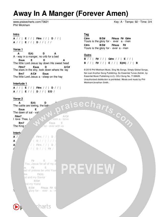 Away In A Manger (Forever Amen) Chords PDF (Phil Wickham)