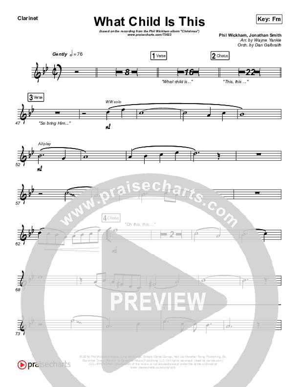 Download the Orchestration for What Child Is This by Phil Wickham, from the album Christmas. This song was arranged by Wayne Yankie / Daniel Galbraith in the key of Em, Fm.