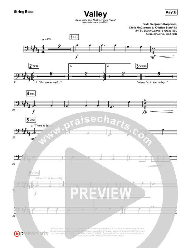Download the Orchestration for Valley by Chris McClarney, from the album Fill This Place (Live). This song was arranged by Dustin Loehrs / Grant Wall / Daniel Galbraith in the key of B, Bb.