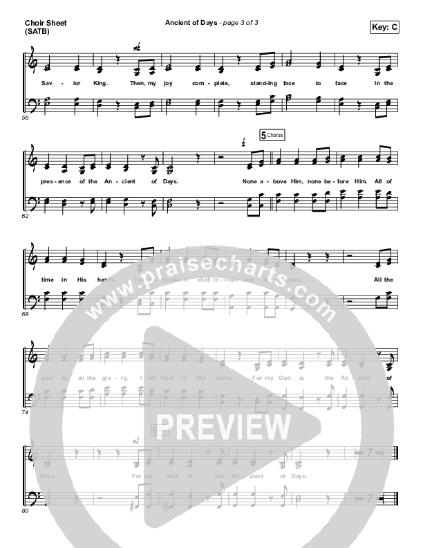 Download the Choir Sheet for Ancient Of Days by CityAlight, from the album Yet Not I. This song was arranged by Grant Wall in the key of C, D.