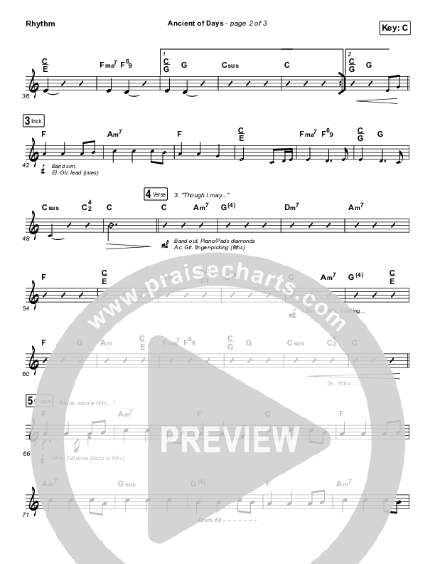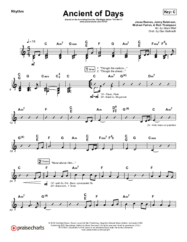 Download the Rhythm Chart for Ancient Of Days by CityAlight, from the album Yet Not I. This song was arranged by Grant Wall in the key of C, D.
