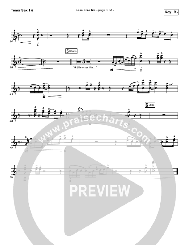 Less Like Me Tenor Sax Sheet Music PDF (Zach Williams)