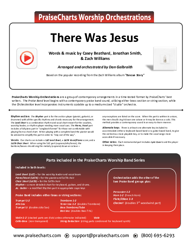 Download the Orchestration for There Was Jesus by Zach Williams / Dolly Parton, from the album Rescue Story. This song was arranged by Daniel Galbraith in the key of Ab, G.