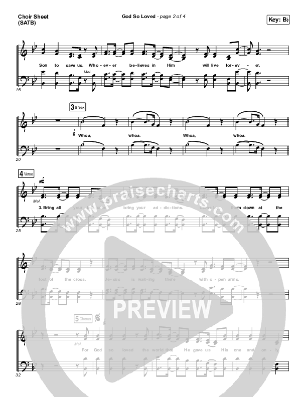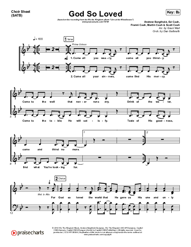 Download the Choir Sheet for God So Loved (Live) by We The Kingdom, from the album Live At The Wheelhouse. This song was arranged by Grant Wall in the key of Ab, Bb, C, D, E, Eb, F, G.