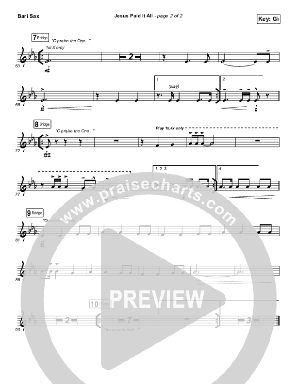 Jesus Paid It All Bari Sax Sheet Music PDF (Kim Walker-Smith / Worship Circle)