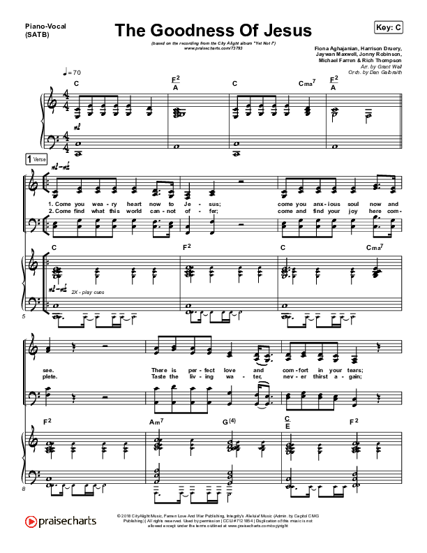 The Goodness Of Jesus Sheet Music PDF (CityAlight)