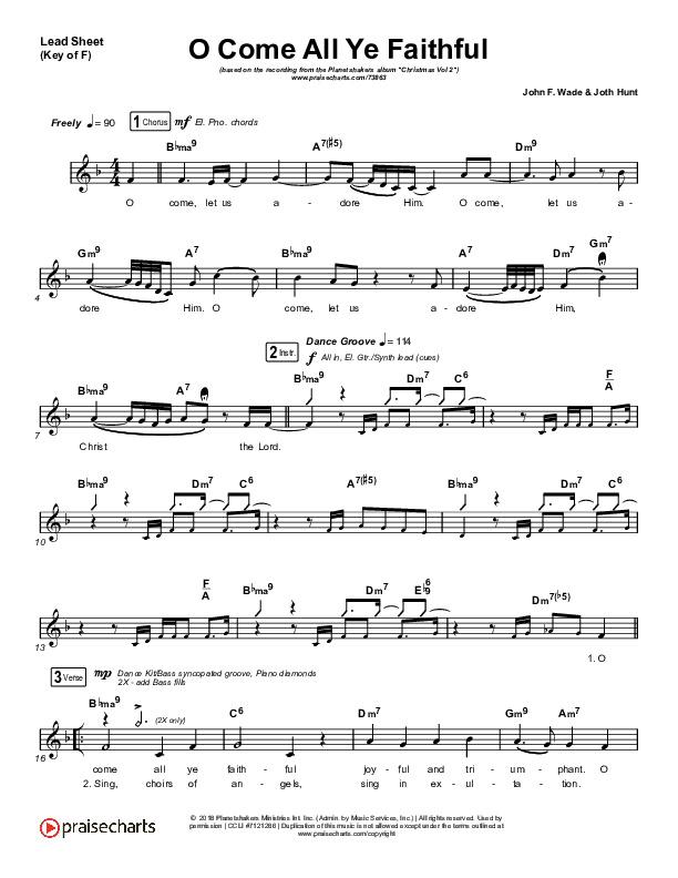 Download the sheet music for O Come All Ye Faithful by Planetshakers, from the album Christmas Vol 2. This song was arranged by Dustin Loehrs / Rob Adams in the key of Eb, F.