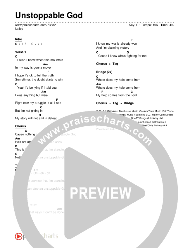 Download the PDF Chord Charts for Unstoppable God by kalley, from the album Unstoppable God.