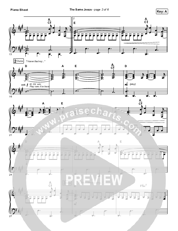 Download the piano sheet for The Same Jesus (Single) by Matt Redman, from the album The Same Jesus - Single. This song was arranged by Grant Wall / Daniel Galbraith in the key of A, Ab.