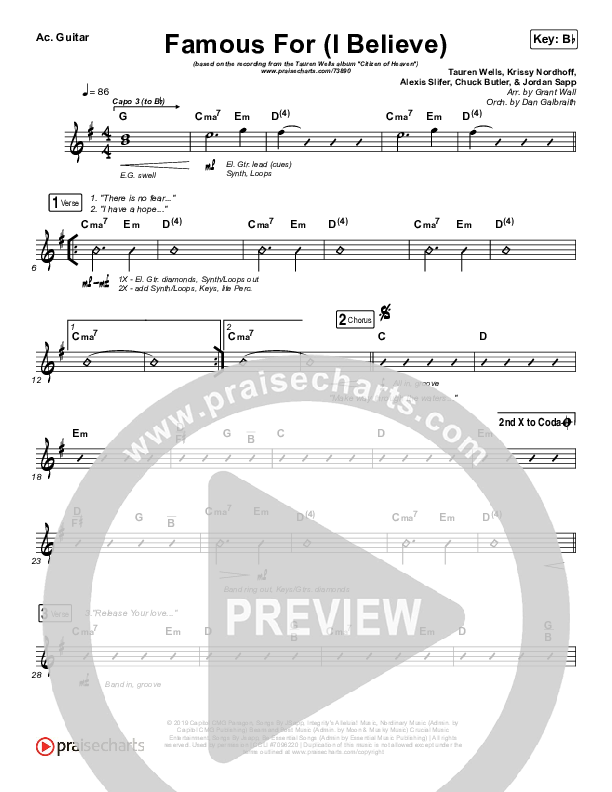 Famous For (I Believe) Sheet Music PDF (Tauren Wells)