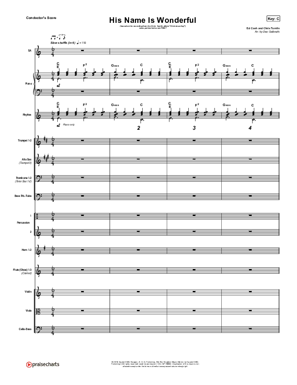 Download the Orchestration for His Name Is Wonderful by Chris Tomlin, from the album Christmas Day: Christmas Songs Of Worship. This song was arranged by Daniel Galbraith in the key of A, Bb, C, F.