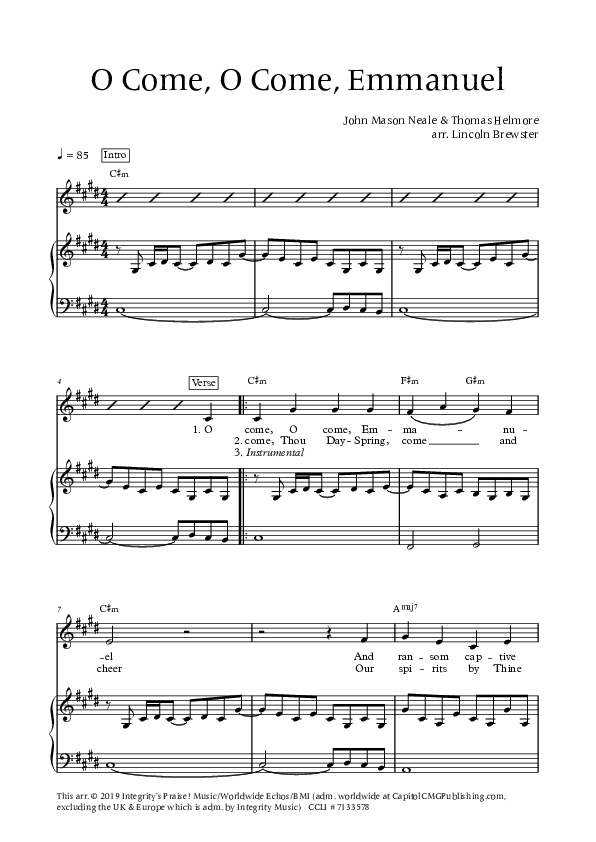 O Come O Come Emmanuel Sheet Music PDF (Lincoln Brewster)