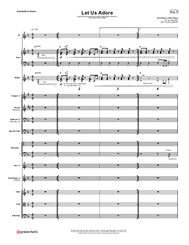 Download the Orchestration for Let Us Adore by David & Nicole Binion, from the album Dwell: Christmas. This song was arranged by Grant Wall / Daniel Galbraith in the key of F, G.