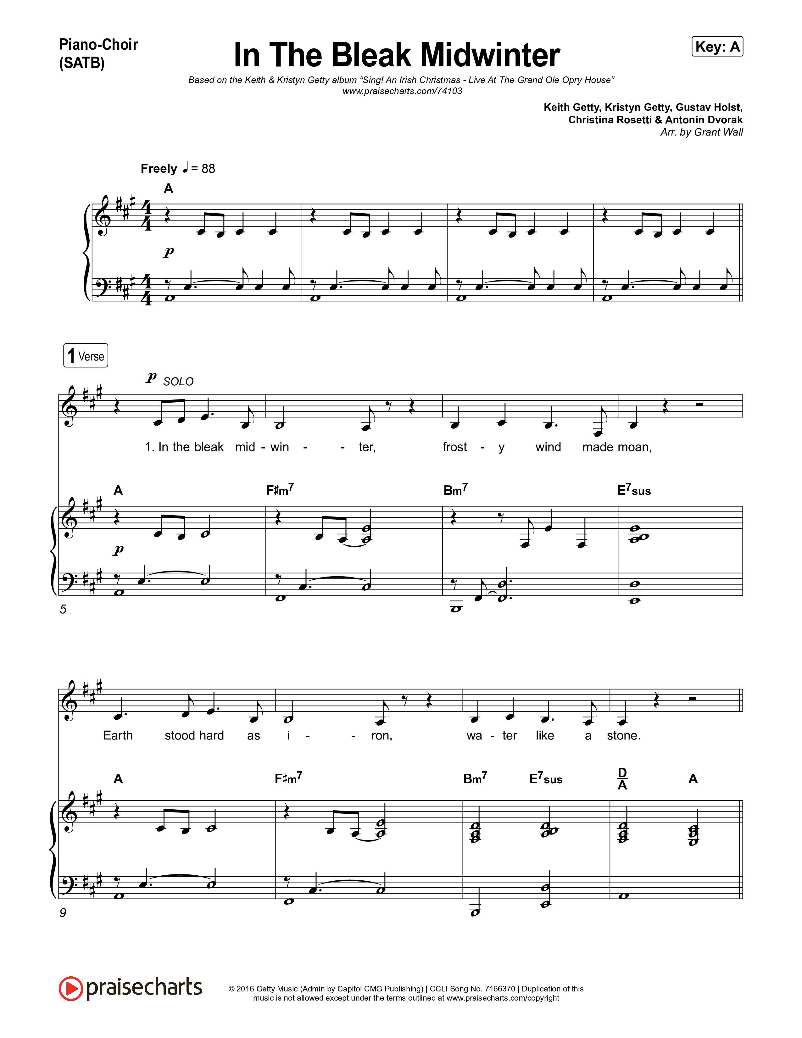 Download the PDF sheet music for In The Bleak Midwinter by Keith & Kristyn Getty, from the album Sing! An Irish Christmas - Live At The Grand Ole Opry House. This song was arranged by Grant Wall in the key of A, Ab.