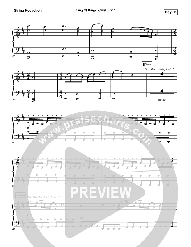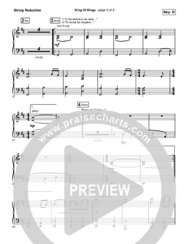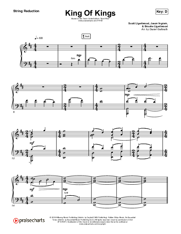 Download the String Reduction sheet music for King Of Kings by Travis Cottrell / Lily Cottrell, from the album Spirit Rise. This song was arranged by Daniel Galbraith in the key of D, Eb.