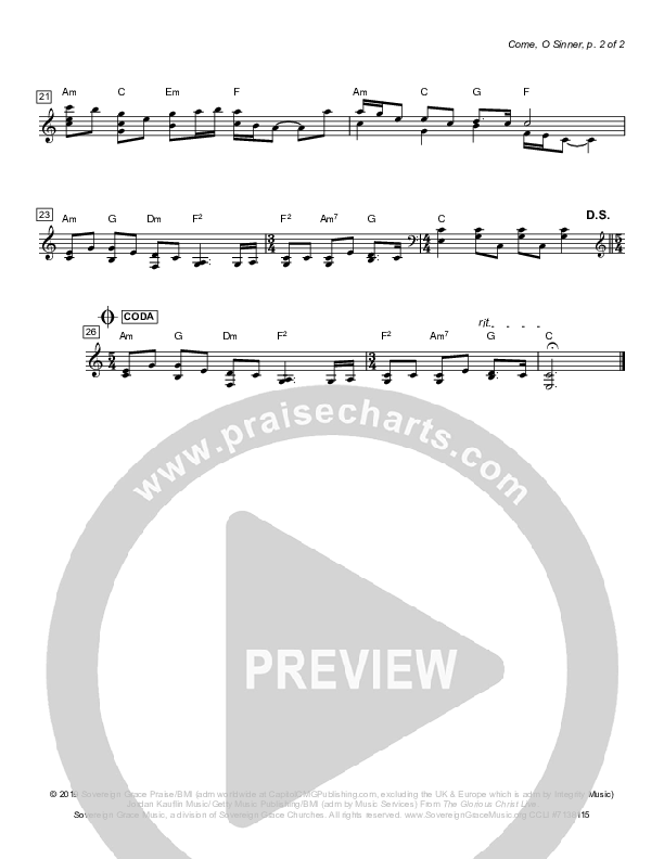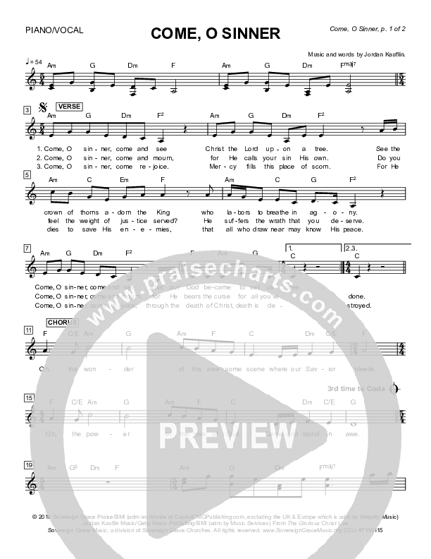 Download the sheet music for Come O Sinner by Sovereign Grace, from the album The Glorious Christ.