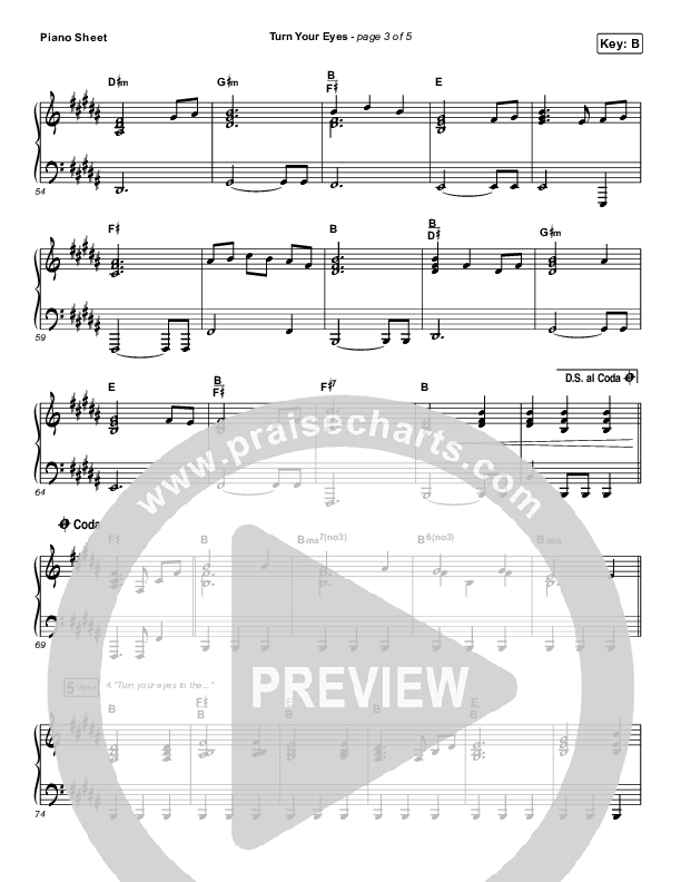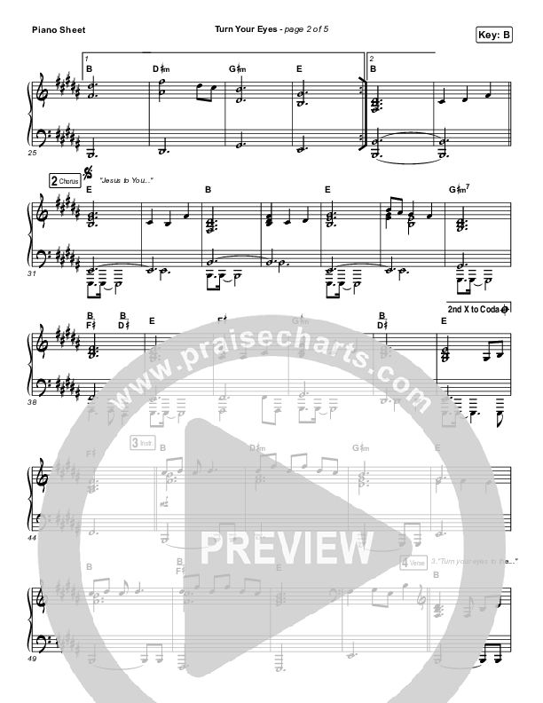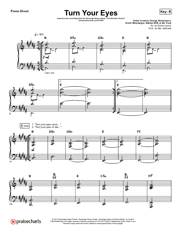 Download the piano sheet for Turn Your Eyes by Sovereign Grace, from the album The Glorious Christ. This song was arranged by Dustin Loehrs / Daniel Galbraith in the key of B, Bb, C.