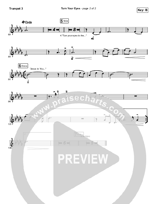 Download the Trumpet 3 sheet music for Turn Your Eyes by Sovereign Grace, from the album The Glorious Christ. This song was arranged by Dustin Loehrs / Daniel Galbraith in the key of B, Bb, C.