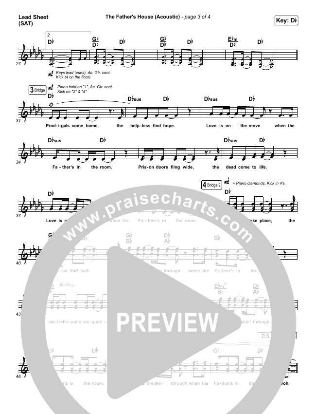 Download the sheet music for The Father's House (Acoustic) by Cory Asbury, from the album The Father's House - Single. This song was arranged by Grant Wall / Daniel Galbraith in the key of C, Db.