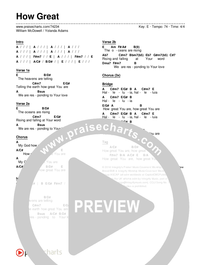 Download the PDF Chord Charts for How Great by William McDowell / Yolanda Adams, from the album The Cry: A Live Worship Experience.